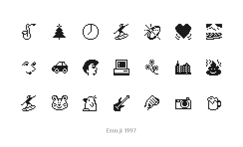 The original Softbank JP Emoji set from 1997. Restored as SVG icons for Figma and Sketch.
