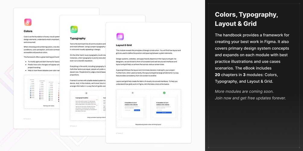✔ Design students and educators who want to learn and teach design systems with Figma. Frames X is a thoughtful bundle that covers both learning material and practical examples to learn from.